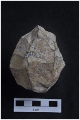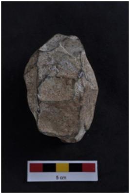 | Description / विवरण | Chopper, circular shape, flake marks on surface. |