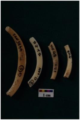 | Description / विवरण | 4 fragments of plain shell bangle, rectangular with convex ends cross-sections, smooth polish surface. |