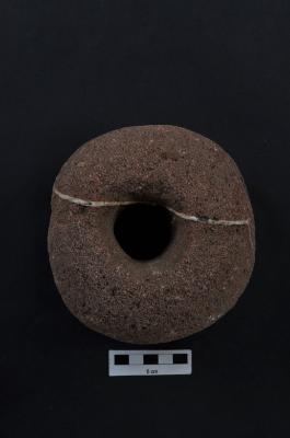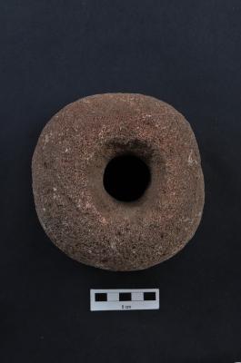 | Description / विवरण | The bored stone, circular in shape with center perforation. |