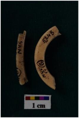 | Description / विवरण | 2 fragments of shell bangle with rectangular cross section, rough surface. |