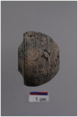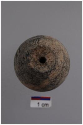 | Description / विवरण | Bead with a concave body, truncated to p and a concave base. |