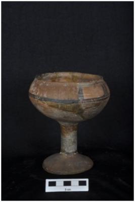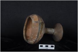 | Description / विवरण | Bowl on stand with painting in black colour on outer surface. |