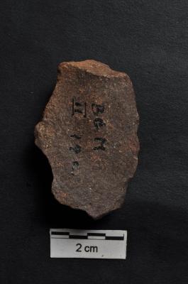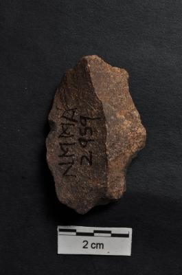 | Description / विवरण | Flake, diffused bulb on ventral surface, striking platform visible, a mid-ridge on dorsal surface. |