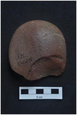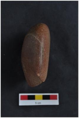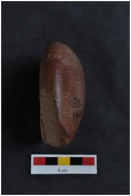 | Description / विवरण | Chopper made on pebble, bifacial, cortex visible. |