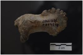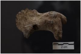 | Description / विवरण | A terracotta object of animal figurine.A small specimen, small tail, one leg is broken. Fan shape hump, perforation on back. Red in colour,well fired, handmade. |