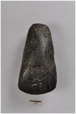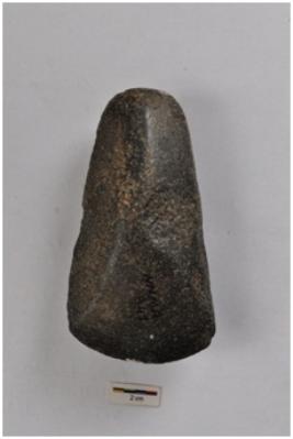 | Description / विवरण | Polished stone axe, pointed butt end, convex working edge. |