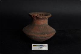 | Description / विवरण | Small lota with painting on outer surface. The painted motifs include oblique strokes set in horizontal bands. |