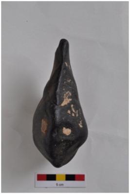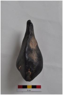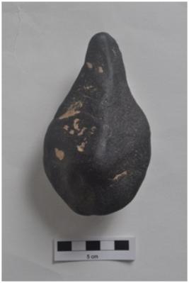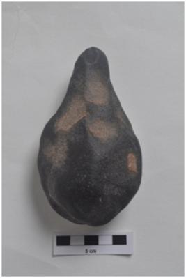 | Description / विवरण | Small pear shaped handaxe, pointed end, round butt end, flake scars on both surfaces. |