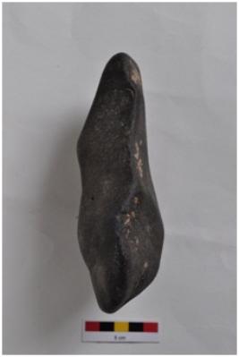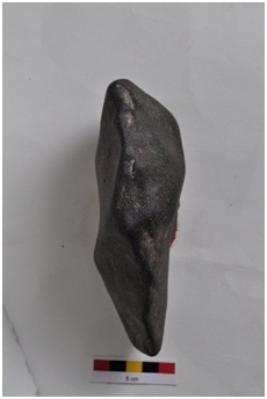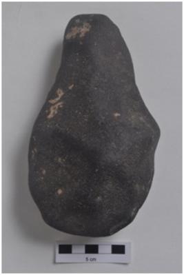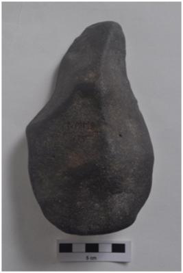 | Description / विवरण | Handaxe, pear shaped, long body, alternate flake scars on periphery. |