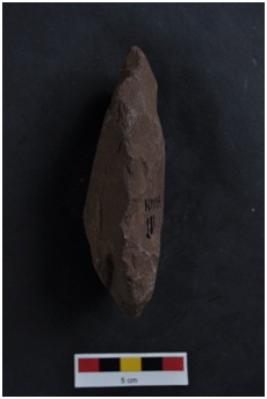 | Description / विवरण | Cleaver, slanting cutting edge, U shaped butt end, flake scars on both surfaces. |