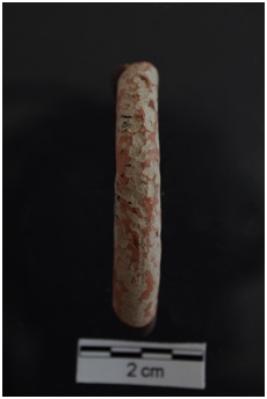 | Description / विवरण | A terracotta object of bangle fragment, circular in cross section, abourded surface. Red in colour, fine fabric & well fired. |