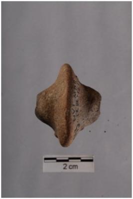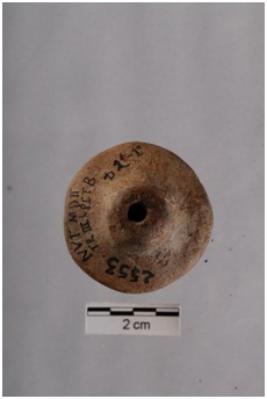 | Description / विवरण | Both side knobbed wheel, Plano convex outline shaped, red in colour, fine fabric, well fired. |