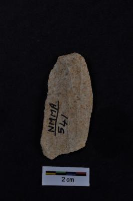 | Description / विवरण | Blade, parallel sided, two ridges on dorsal surface, proximal end broken. |