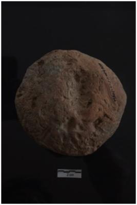 | Description / विवरण | A Terracotta object of cake circular in shape, figurine punched marks in both the surface in center, medium coarse fabric, red in colour, well fired. |