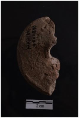 | Description / विवरण | A terracotta object of thick wheel, rectangular in section, broad at the circumference but with slightly biconvex sides, half fragment, central perforation, red in colour, well fired, fine fabric. |