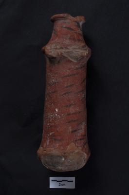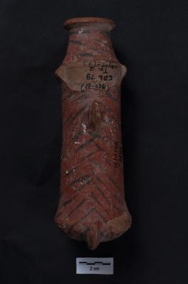 | Description / विवरण | Bull shaped decorated long cylindrical pot. |
