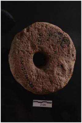 | Description / विवरण | A terracotta object of thick wheel, rectangular in section, broad at circumference, a complete specimen, coarse red well fired, rough surface, big perforation. |