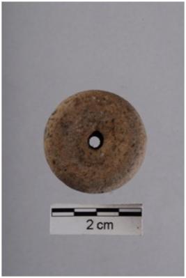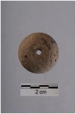 | Description / विवरण | Bead, truncated Arcanut shape, red in colour, unslipped. |