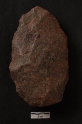 | Description / विवरण | Handaxe, leaf shape, bifacial, retouches along the periphery. |