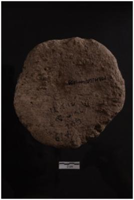 | Description / विवरण | A terracotta object of lid, biconvex outline shape, painted lump on the top, red in colour, well fired,coarse fabric. |