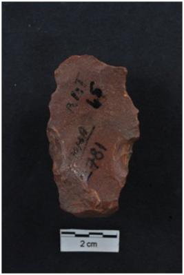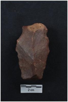 | Description / विवरण | Blade with convex working edges, diffused bulb with striking platform at proximal end, a vertical ridge on dorsal surface, retouches on both working edges. |