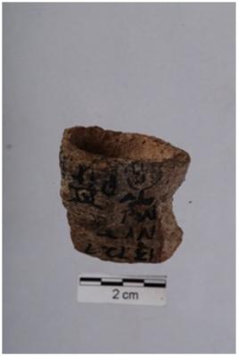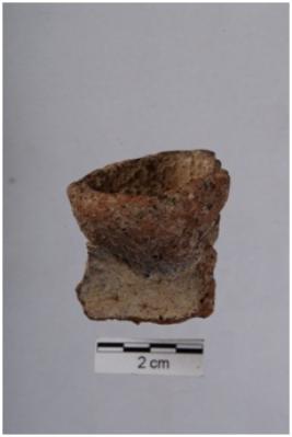 | Description / विवरण | Fragment of lamp with a thin sided shallow, affixed on the edge, red in colour, medium coarse fabric, well fired. |