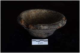 | Description / विवरण | A terracotta small bowl or pantie shape. Triangular rim, flat base, red black in colour, ill fired, coarse surface. |