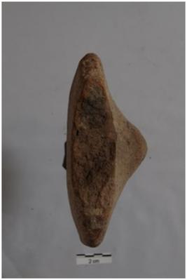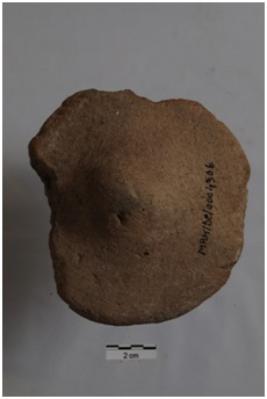 | Description / विवरण | A Terracotta lid slid piece with convex base & a horizontal projection for hold.Red colour, well fired, medium coarse fabric. |