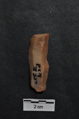 | Description / विवरण | Blade, parallel sided, diffused bulb with striking platform at proximal end, two ridges on dorsal surface. |