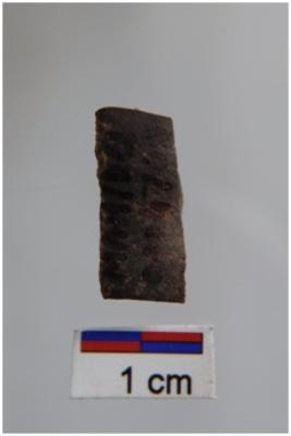 | Description / विवरण | Blade, parallel sided, a ridge on dorsal surface, use-ware marks on both working edges. |