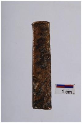 | Description / विवरण | A copper piece,rusted surface, having square cross section. Long rectangular outline shape. |