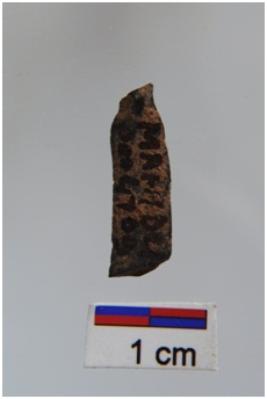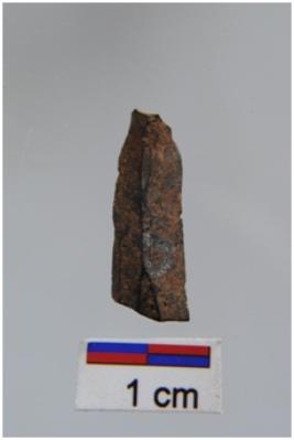 | Description / विवरण | Blade, diffused bulb with striking platform at proximal end, a ridge on dorsal surface, use-ware marks on both working edges. |