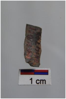 | Description / विवरण | Blade, parallel sided, a ridge on dorsal surface, use-ware marks on both working edges. |