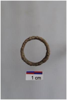 | Description / विवरण | A copper ring, circular in shape, rusted surface. |