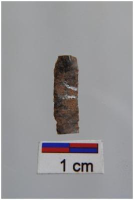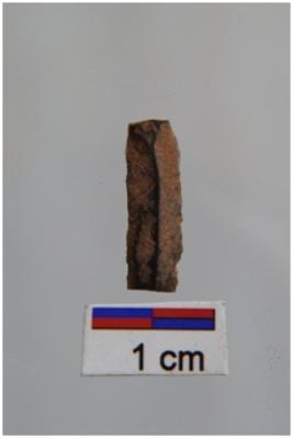 | Description / विवरण | Blade, parallel sided, prominent bulb with striking platform at proximal end, a ridge on dorsal surface, use-ware marks on both working edges. |