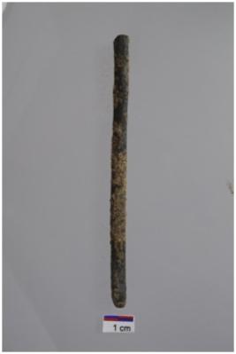 | Description / विवरण | A copper stick with round in section, straight body, rusted surface. |