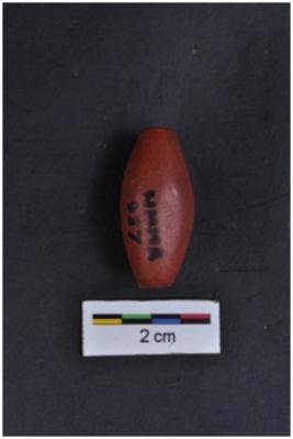 | Description / विवरण | Long barrel shaped bead, circular cross section, with perforation, smooth polished surface. |