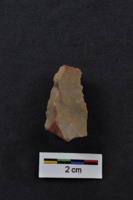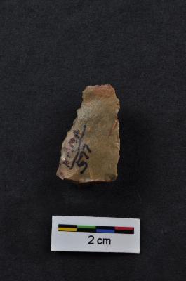 | Description / विवरण | Small blade with cross edges, diffused bulb with striking platform, cortex visible on surface, use-ware marks on both working edges. |
