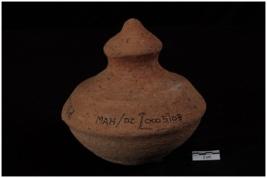 | Description / विवरण | Finial shaped lid, Red ware rough surface, fine fabric, well fired. |