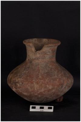 | Description / विवरण | A lota with a high neck, and a squat shaped body with beaded rim |