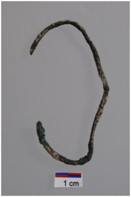 | Description / विवरण | A copper wire, circular section, having wavy body and rusted surface. |