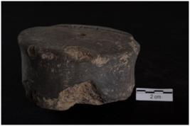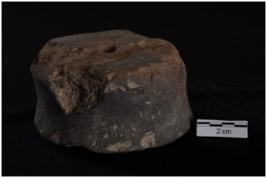 | Description / विवरण | A small spool like wheel with center perforation, biconvex outline shape, black in colour, fine fabric, well fired. |