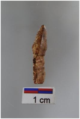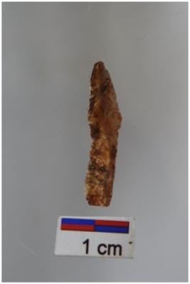 | Description / विवरण | Blade with a ridge on dorsal surface and use ware marks on both working edges. |