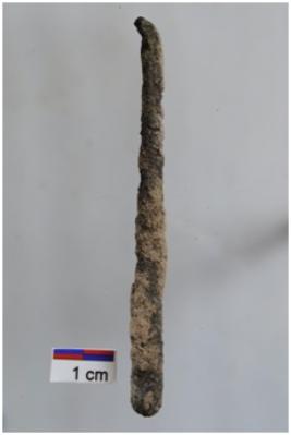 | Description / विवरण | A straight copper wire, one end is slightly pointed, heavily rusted surface & another end is round. |
