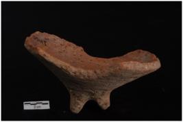 | Description / विवरण | A specimen of lid with incurved rim circular base with three legs attached, fine fabric, wheel made. |