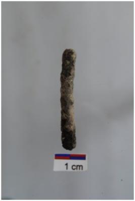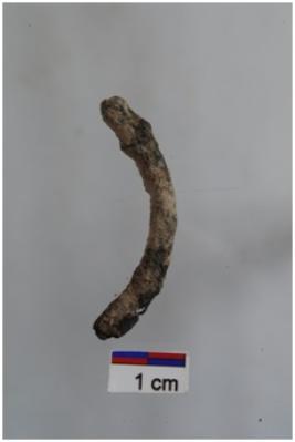 | Description / विवरण | Fragment of copper part of bangle piece circular cross section rustled surface. |