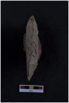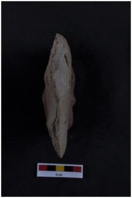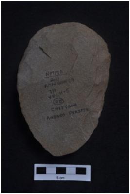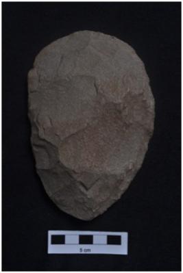 | Description / विवरण | Handaxe made over a flake, ovate, flake scars on both surfaces. |