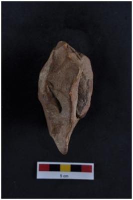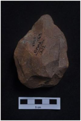 | Description / विवरण | Chopper, slightly oval shape, bifacial. |