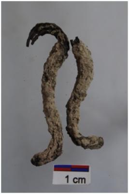| Description / विवरण | A copper wire, circular section, zigzag pattern, heavily rusted surface. |