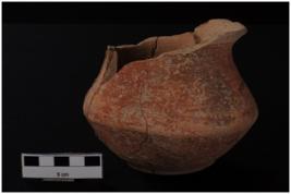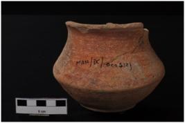 | Description / विवरण | A lota shaped pot with an out curved rim, a blunt carination, on the body and a ring base through which bulging body is seen, fine fabric, well fired. |
